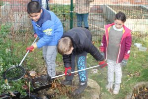 Swea : Die Gartenarbeit macht viel Spaß, aber die Kälte mag ich gar nicht. Wir haben gehächselt, Hecken beschnitten und Fische, Frösche und Käfer gesehen.