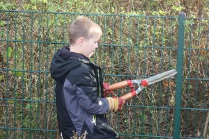 Ahmad : Mir gefällt der Kurs, weil wir viel Spaß haben. Ich habe den Stachelbeerbusch umgepflanzt. Jetzt hat er mehr Sonne. Wir haben das ganze Laub vom Schulhof weggeharkt.