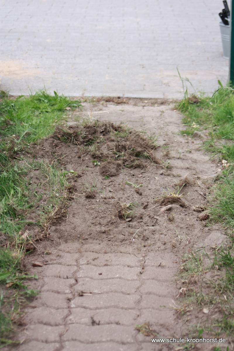 Der Steinweg ist jetzt vollständig zu sehen. Da haben Heda und Miray richtig hart gearbeitet. Sieht jetzt richtig toll und einladend aus. Super, ihr zwei!! Marvin und Darren haben wieder die pieksenden Rosen beschnitten.