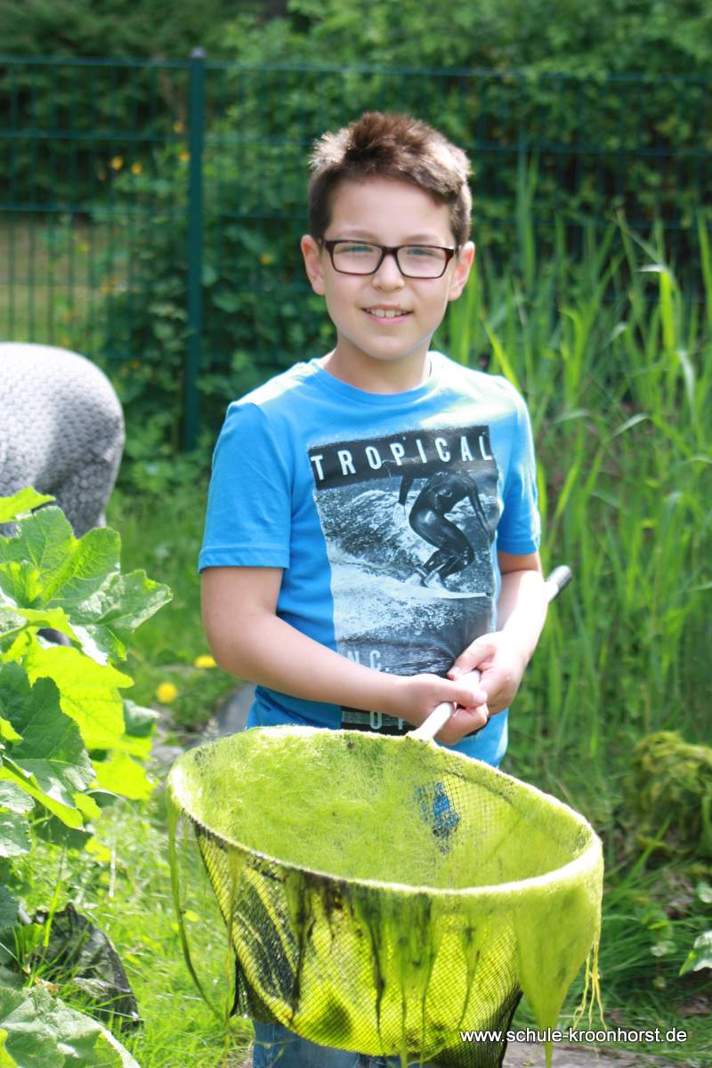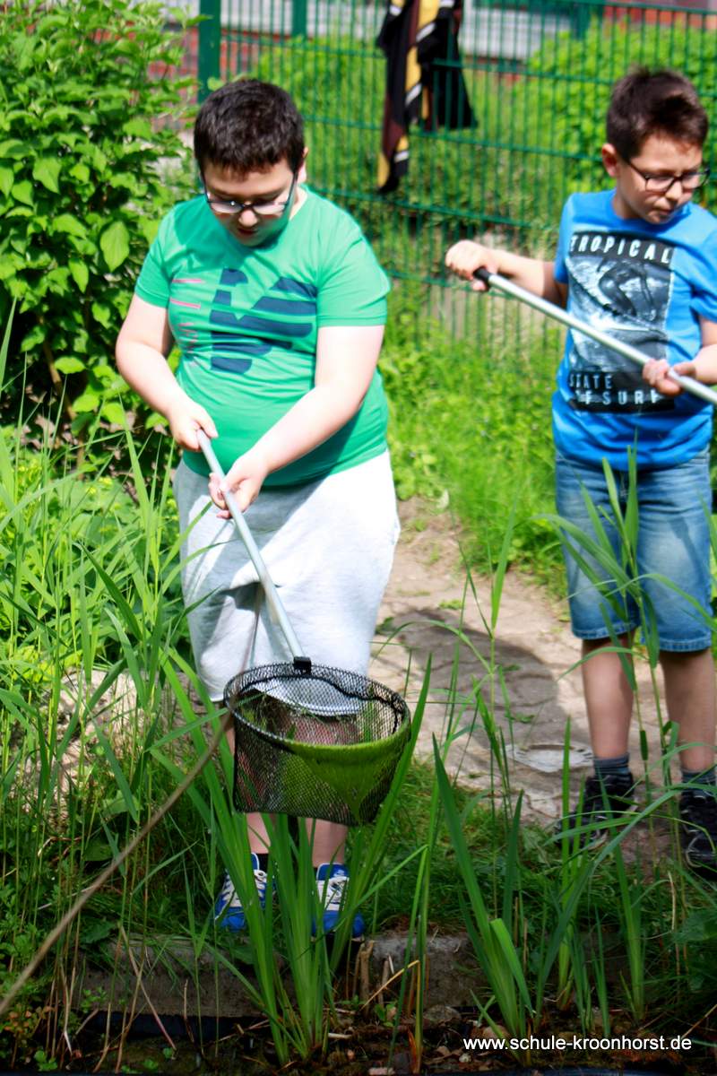 Die Ferienwoche hat der Teich einigermaßen gut überstanden. Aber es gab am Montag viel zu tun. Die vielen Algen wurden von Emirhan und Yusuf herausgefischt. Leider ist der Froschlaich in der Kälte erfroren. Aber den Fischen und Fröschen geht es gut. Und sogar ein Molch wurde entdeckt.
