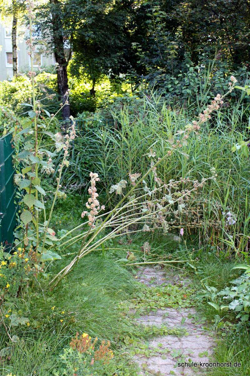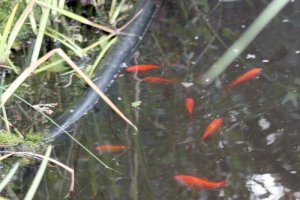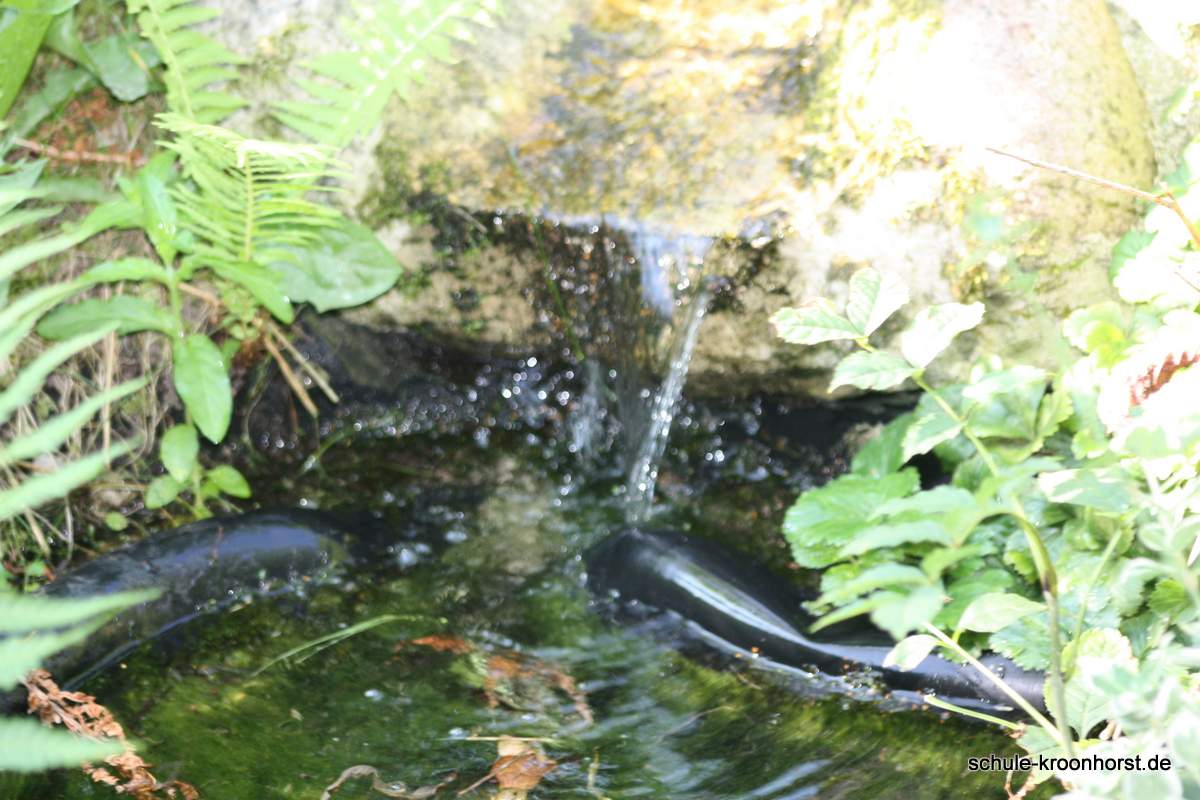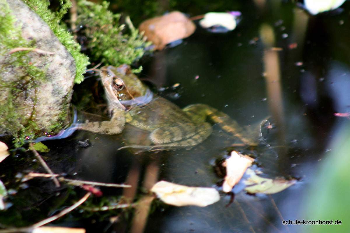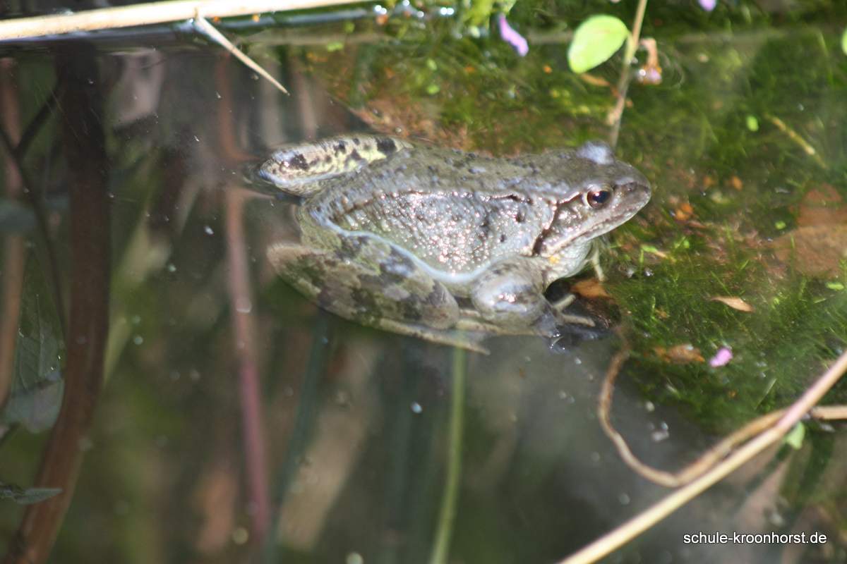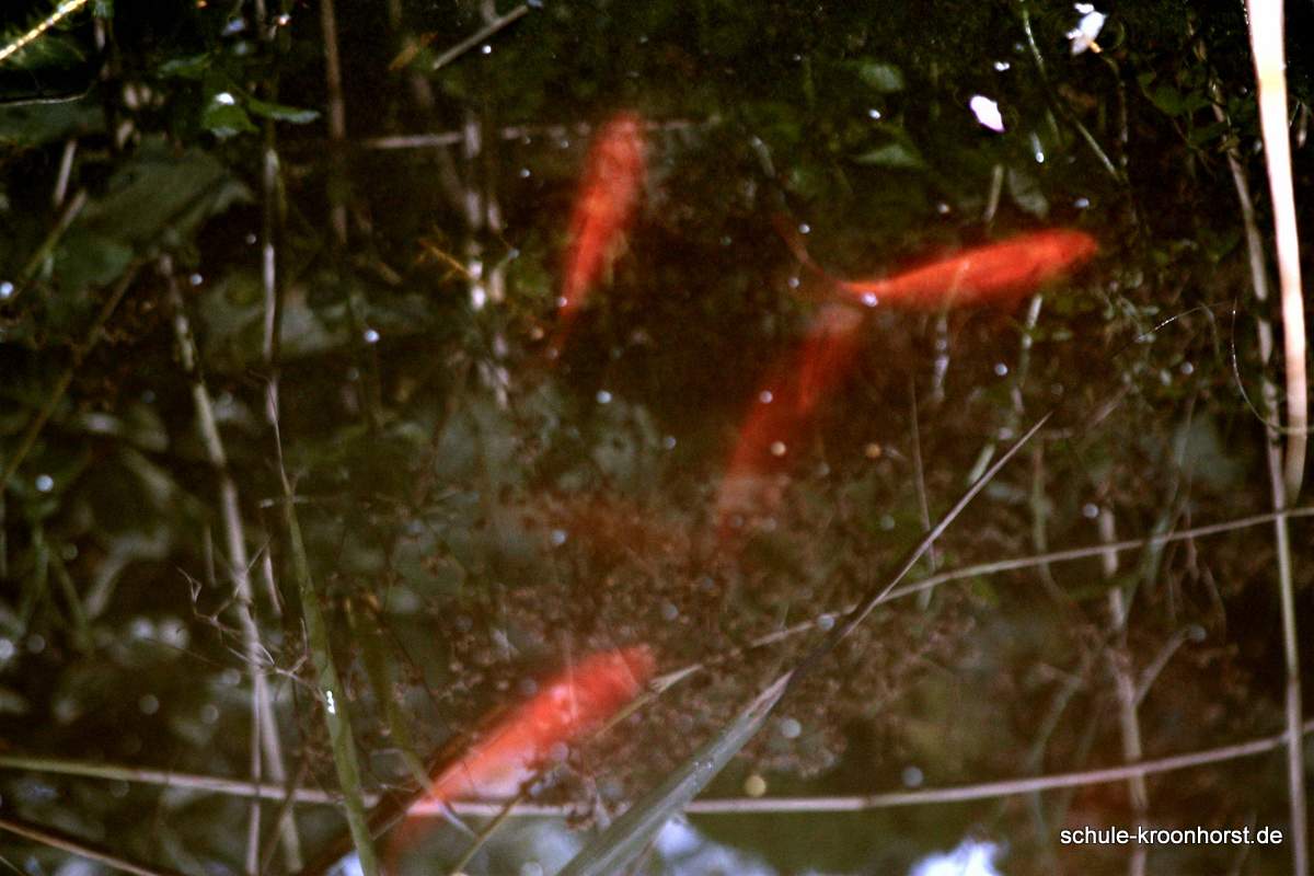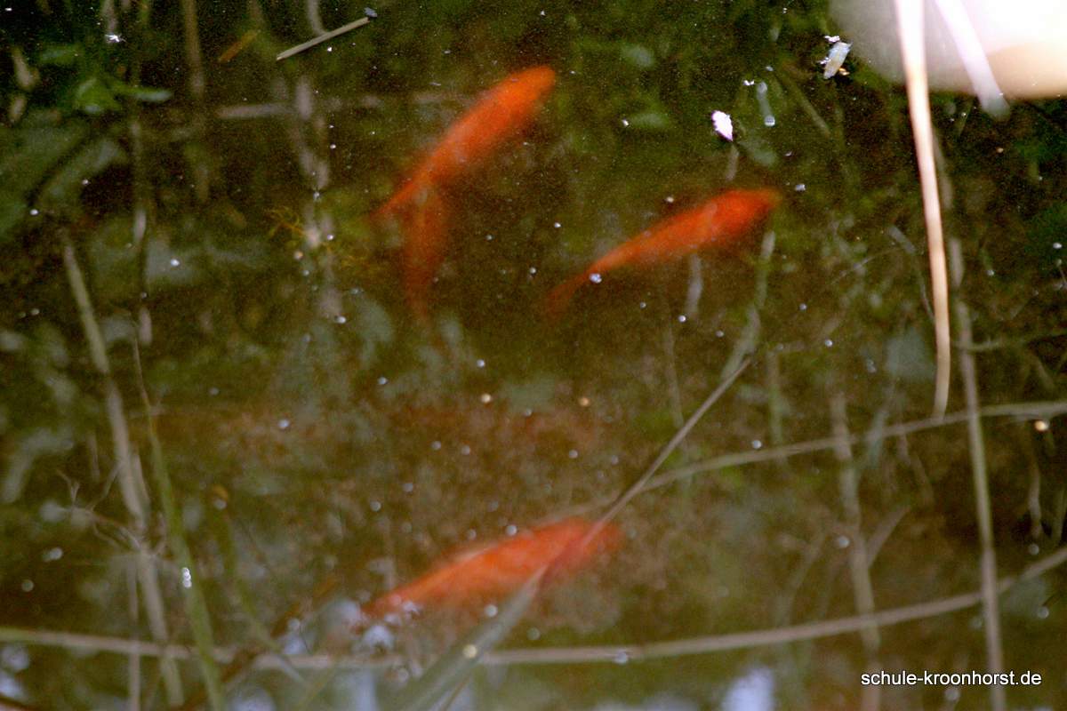 Da der Schulteichkurs erst am 11.09. beginnt, habe ich Hand angelegt. Zunächst musste das Schilf abgeschnitten werden, damit ich an den Teich komme. Die Algen haben sich derartig vermehrt  – also erstmal kiloweise Algen herausfischen. Und wie man sieht – die Fische sagen DANKE! Auch die Seerose hat sich über den halben Teich ausgebreitet. Den Berg Seerosenblätter seht Ihr auf einem der Fotos. Plötzlich lassen sich auch dieFrösche wieder blicken. Nun noch den Uferbereich lichten und Wasser in den Teich fließen lassen. Die Filter der Pumpe sind gereinigt, aber leider funktioniert die Pumpe zur Zeit noch nicht. Unser Hausmeister tut, was er kann. Danke!